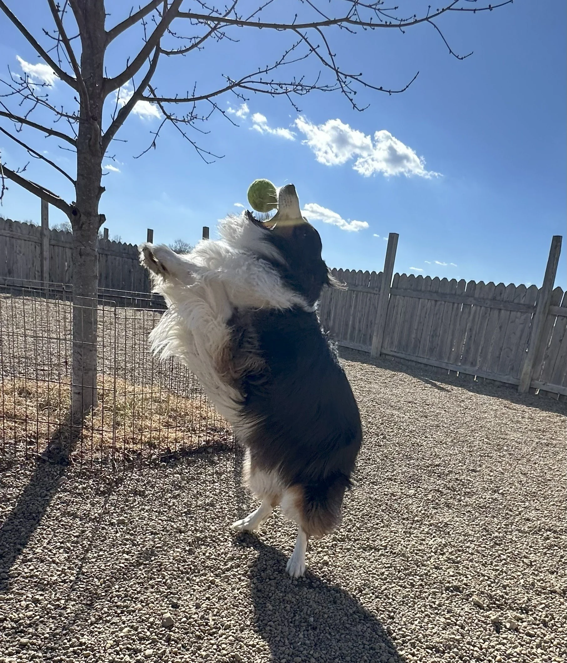 "There's no strict time for outdoor play," Brian explains. It varies by breed, energy level, and the weather. Their goal is always the same— "a tired dog is a good dog."