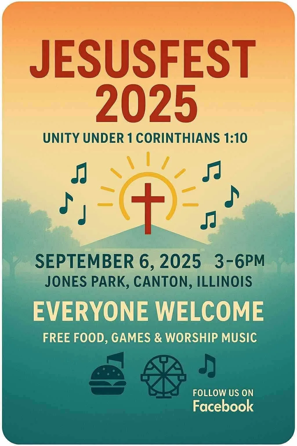 Area churches and community members are preparing to gather at Jones Park in Canton for Jesus Fest 2025, a free, family-friendly celebration of faith and unity. The event will take place on Saturday, Sept. 6, from 3 to 6 p.m., and is open to the public.